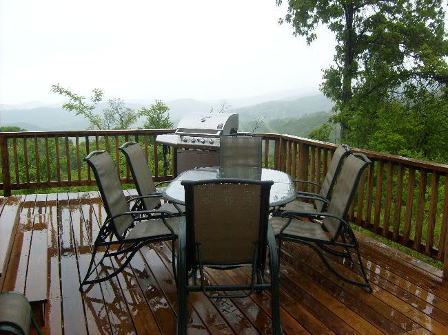 Grill and deck furniture for relaxing outdoors